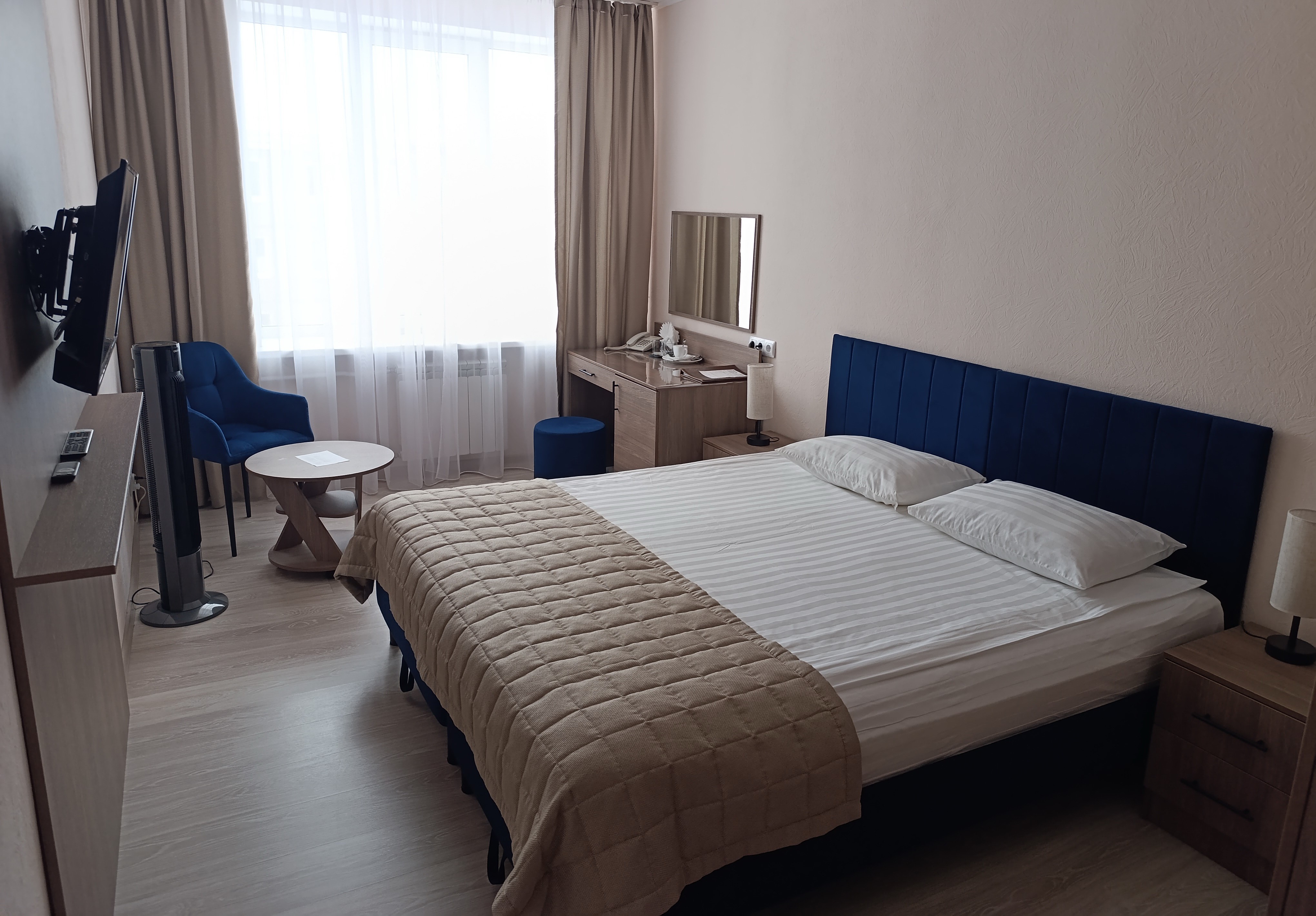 Общая площадь номера – 24,5 кв. м. В однокомнатном номере расположены комната, прихожая и санузел.