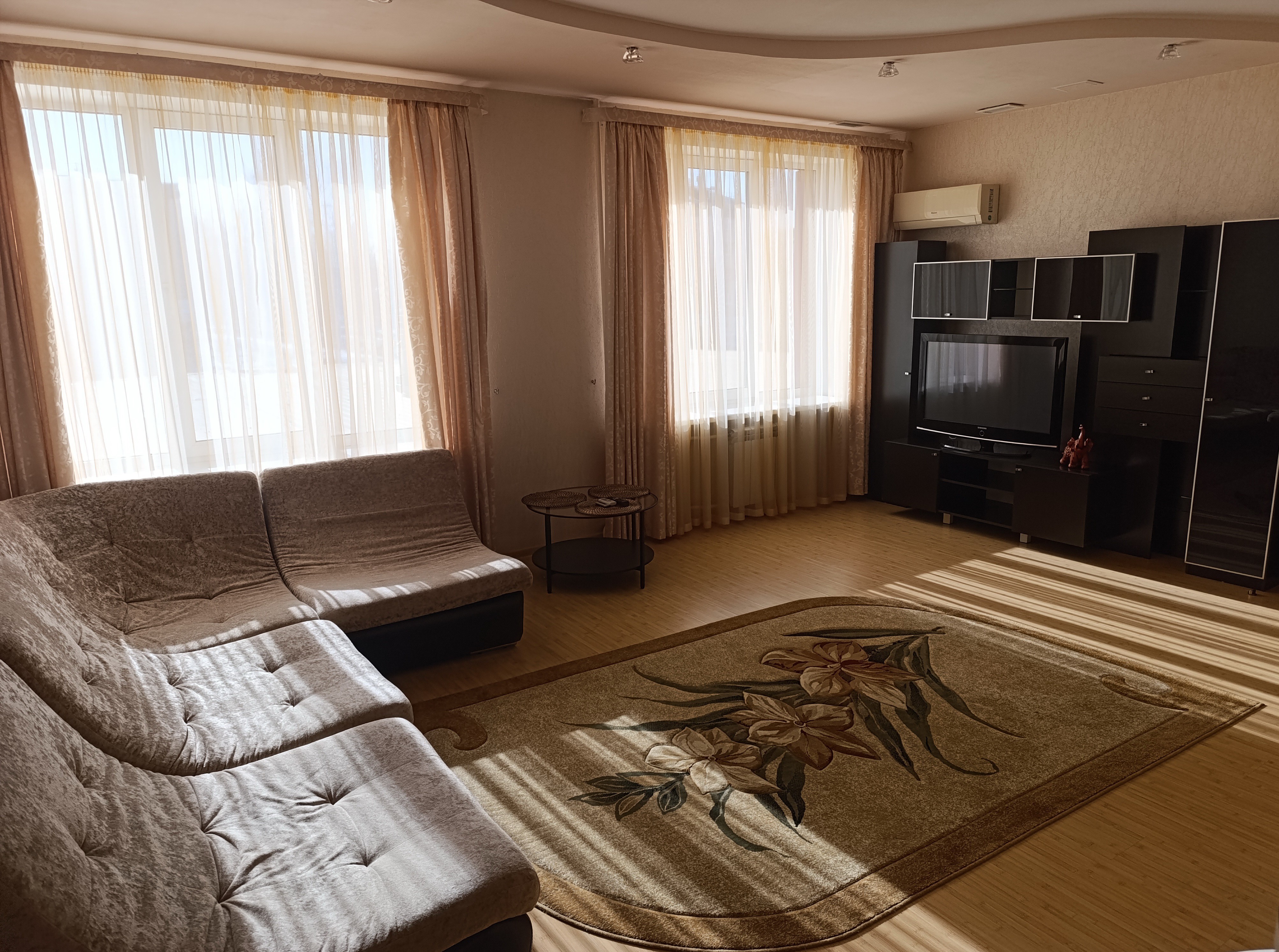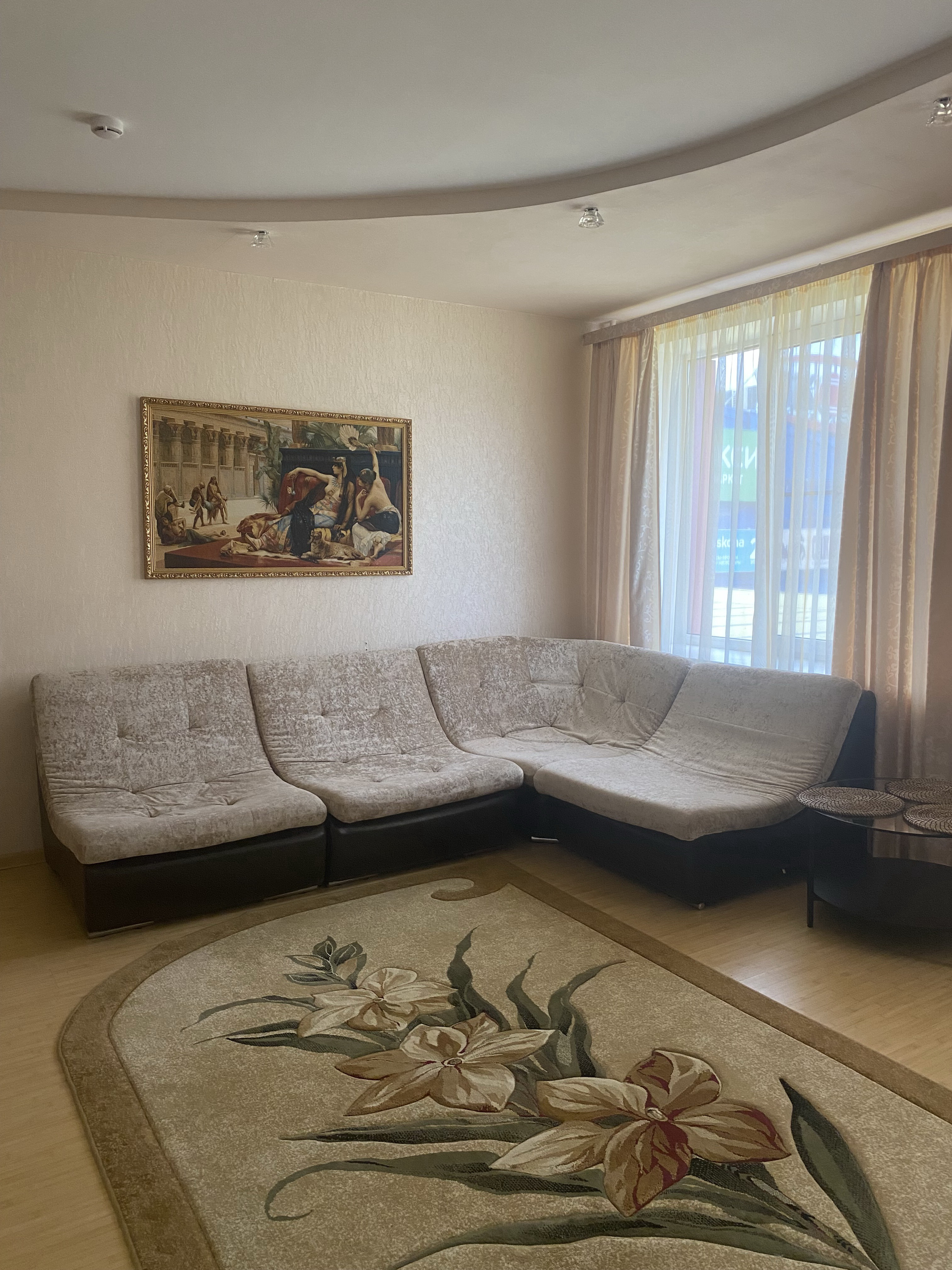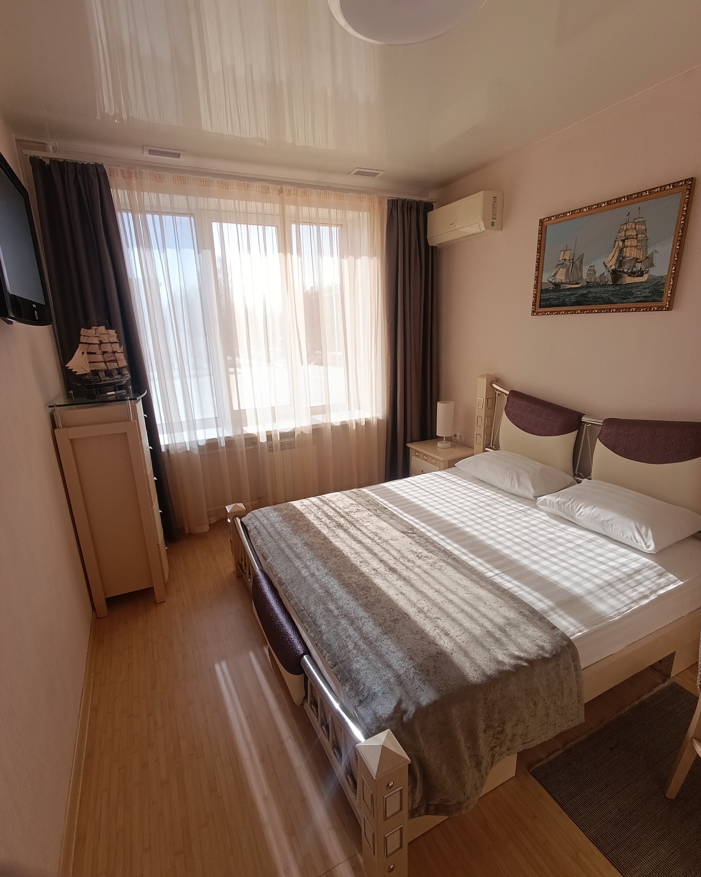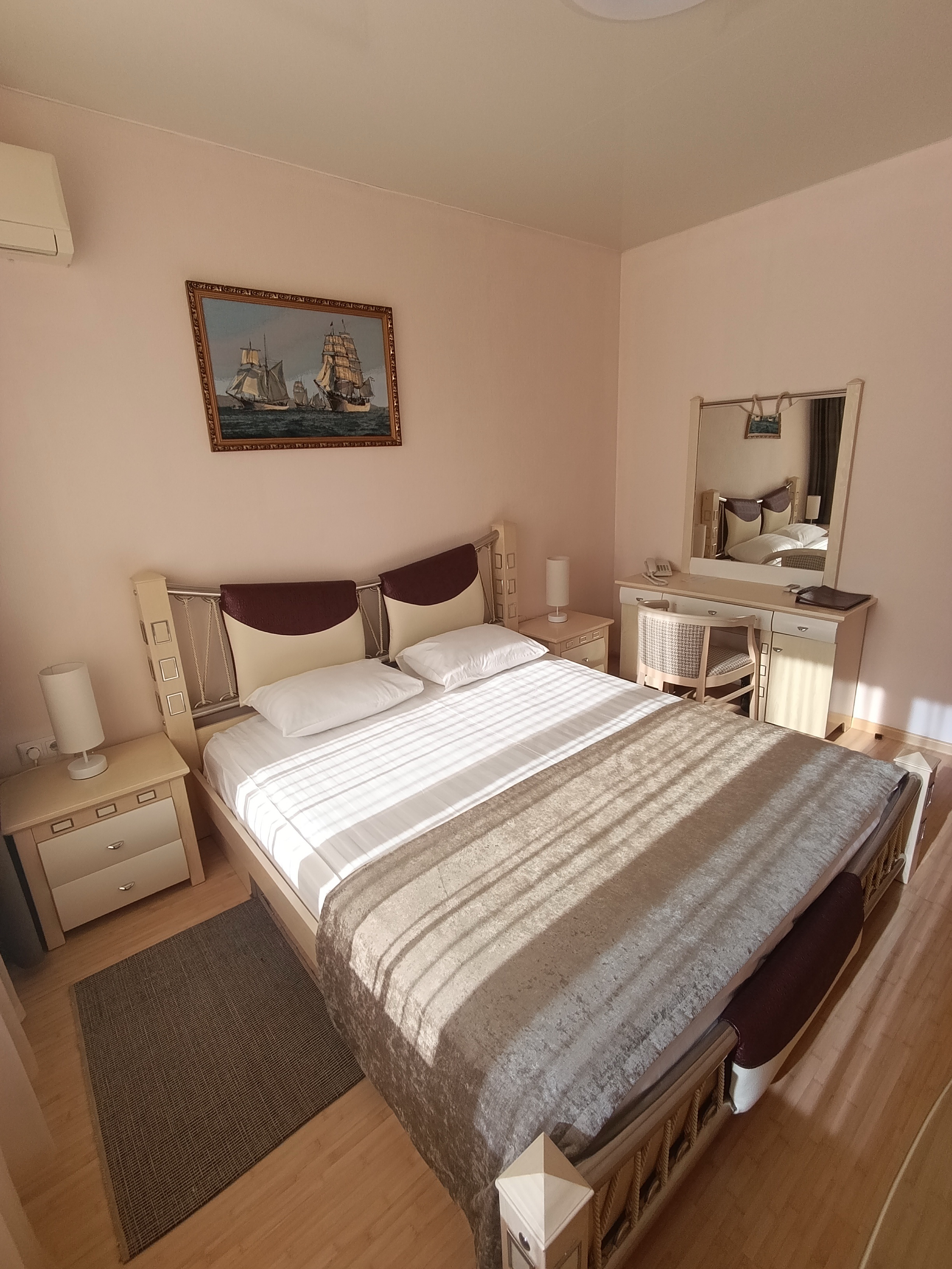 Общая площадь номера 50 кв.м. Двухкомнатный номер, состоящий из гостиной с кухонным уголком и спальни с отдельной ванной комнатой, прихожей, дополнительного санузла. Интерьер номера выдержан в спокойной цветовой гамме.